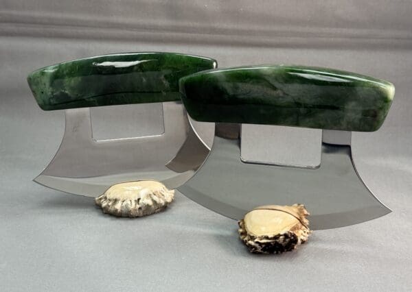 Made by Ivory Jacks – Alaskan Ulu with Jade Handle (our state stone). Comes with Antler Crown Base.